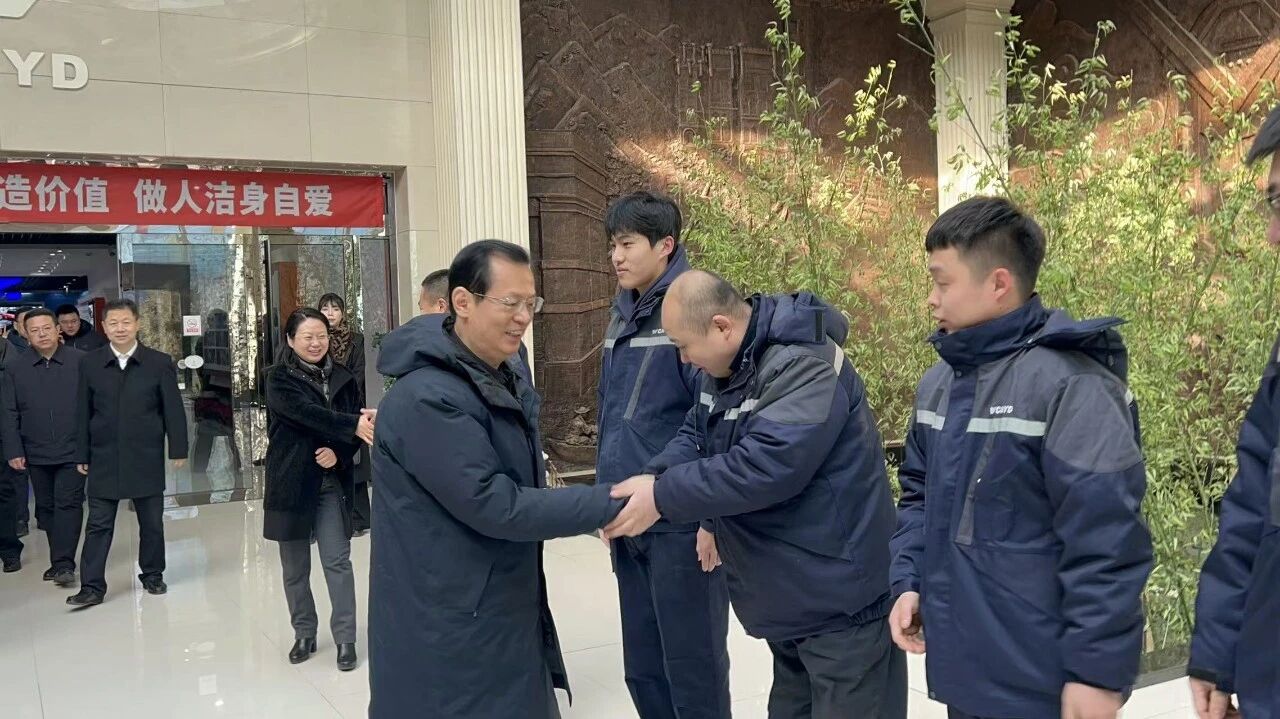 1月22日,辽宁省人大常委会党组副书记、副主任,省总工会党组书记、主席陈绿平,辽宁省商务厅党组书记、厅长潘爽一行赴沈阳远大企业集团,调研指导工会工作并开展“两节”送温暖活动。集团党委书记朱永鹤全程陪同并汇报相关情况。此次调研聚焦企业外贸出口、核心产业发展及工会服务保障等重点,凸显了沈阳远大在辽宁先进制造业外贸领域的标杆示范作用。